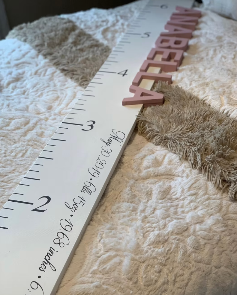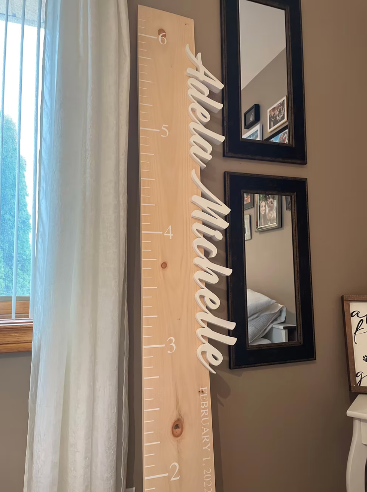 These customizable height rulers are a beautiful addition to any child's nursery decor, while also serving as a practical tool for tracking their growing progress. Capture your children's growth in a decorative and personalized way with our 3D Height Rulers. Please visit our 'Custom Order' tab and fill out the order form to inquire.