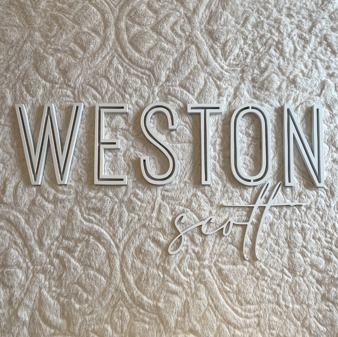 Personalized names can be made for nurseries and can be hung on the wall with either double-sided tape or nails. Our products comes in custom styles, sizes and colours to fit any room's aesthetic. Please visit our 'Custom Order' tab and fill out the order form to inquire.